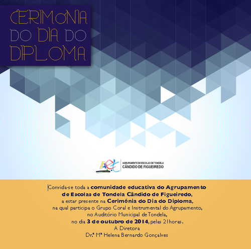 No dia 3 de outubro, o Auditório Municipal de Tondela, encheu-se de Alunos, Encarregados de Educação, Professores e Funcionários do Agrupamento de Escolas de Tondela Cândido Figueiredo, para a Cerimónia de Entrega dos Diplomas.