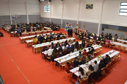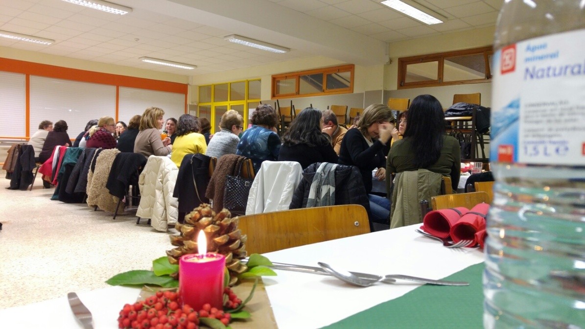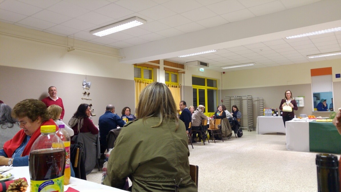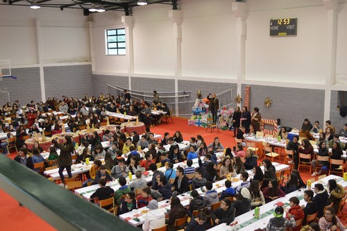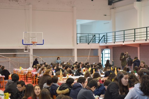 Passando-se à ceia, eram cerca de uma centena pessoas, já foram muito mais noutras alturas, mas as muitas reuniões e o excesso de trabalho levam a que alguns nem têm tempo para estes convívios, está-se a falar de reuniões até tarde da noite e à hora a que este jantar ia ser servido ainda estavam a acabar algumas reuniões de avaliação e amanhã às 8.30 horas da manhã começam novas reuniões, mas voltando ao jantar convívio, aos que apareceram foi servida uma ementa rica nos pratos tradicionais da época, bacalhau com broa e batata a murro embebido em azeite, muito bem confecionado pelas responsáveis da cozinha do Agrupamento e com um bom néctar a acompanhar ou ao gosto pessoal de quem quisesse trazer.