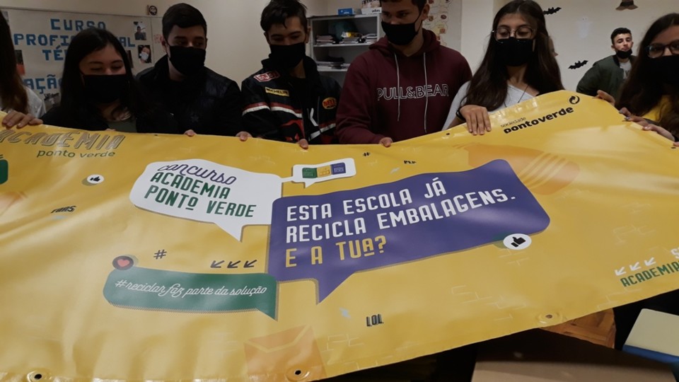 Os alunos do 11° CPTAT aceitaram o desafio da Sociedade Ponto Verde na Escola Secundária de Molelos. Colabora com eles na missão da reciclagem.