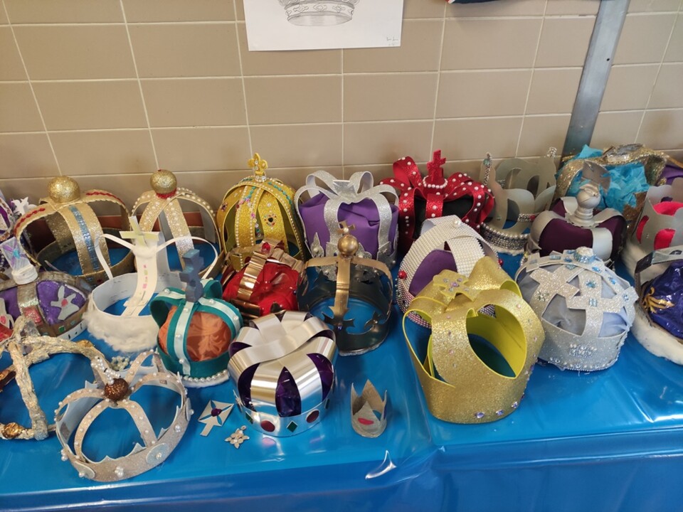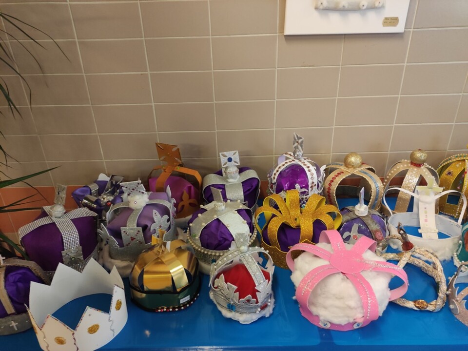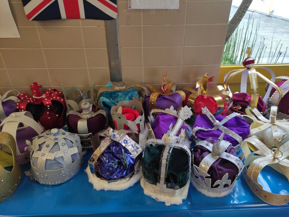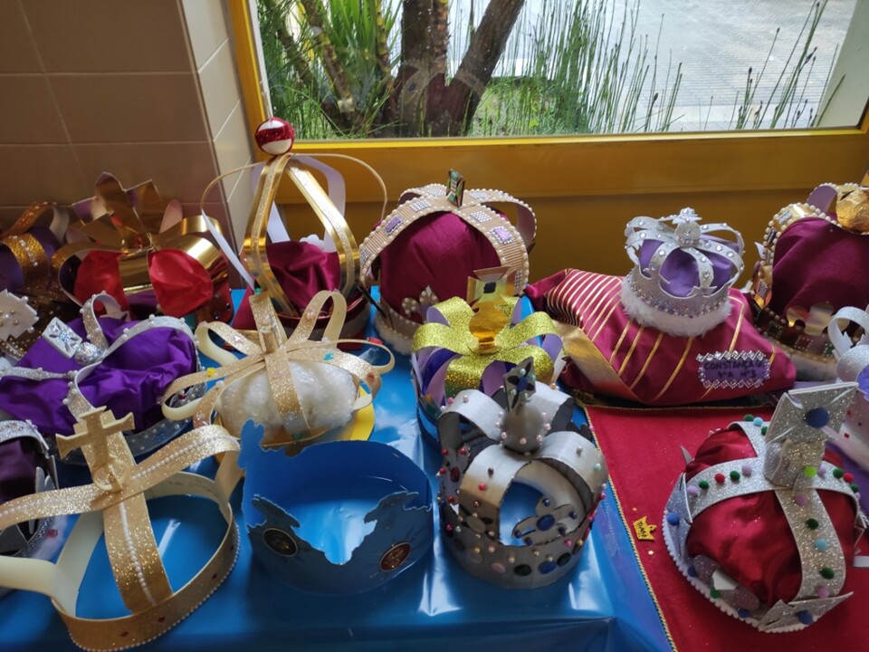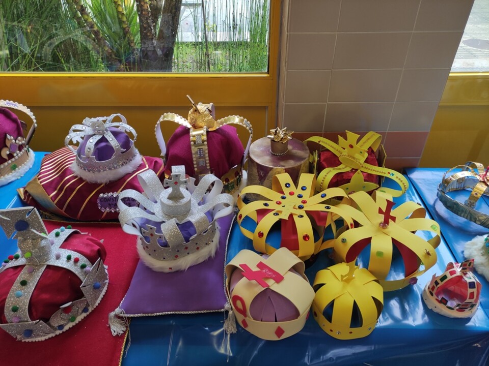 O grupo de Inglês, no âmbito do projeto “English 4Families” lançou uma proposta aos alunos dos 4.ºs e 5.ºs anos da Escola sede de agrupamento, que constou da realização de coroas em modo de homenagem à Rainha: “Queen Elisabeth II” juntamente com as suasfamílias. As coroas estão expostas no átrio da Escola.