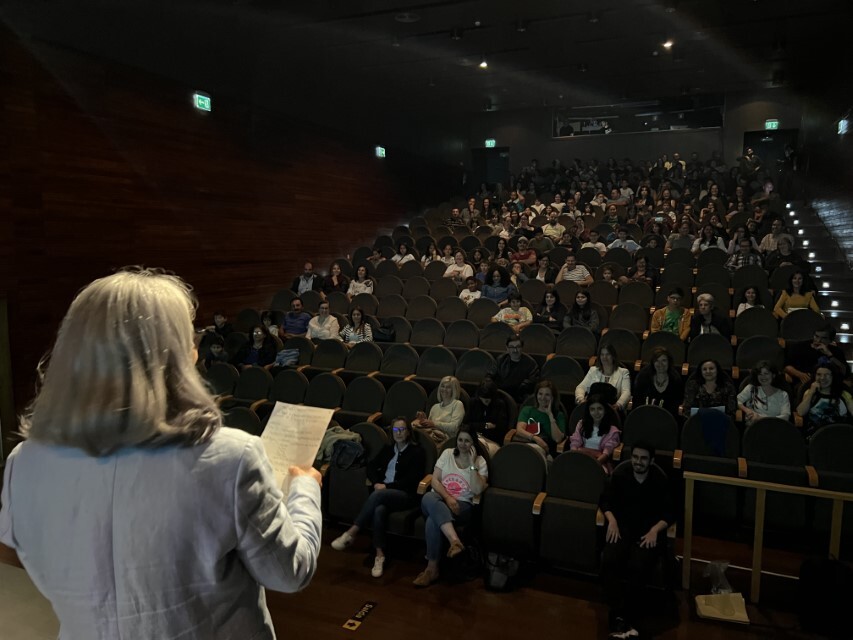 Estiveram presentes alunos, docentes, Pais/EE, representantes dos diversos Departamentos, em especial do Departamento de Artes, elementos da equipa das nossas Bibliotecas Escolares, a Drª Helena Gonçalves, (diretora do nosso AETCF), a Drª Raquel Seabra da CMT, elementos da comunidade local e o convidado Tiago Pimenta, jovem animador, que fez a apresentação e o making off do seu filme “A Semente que palpita”.