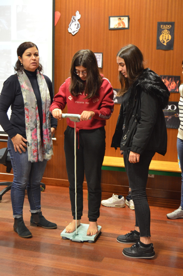 Os alunos foram convidados a experimentar as várias valências do programa: medição da massa corporal, glicémia… e participaram num momento de demonstração de exercício físico conjunto.