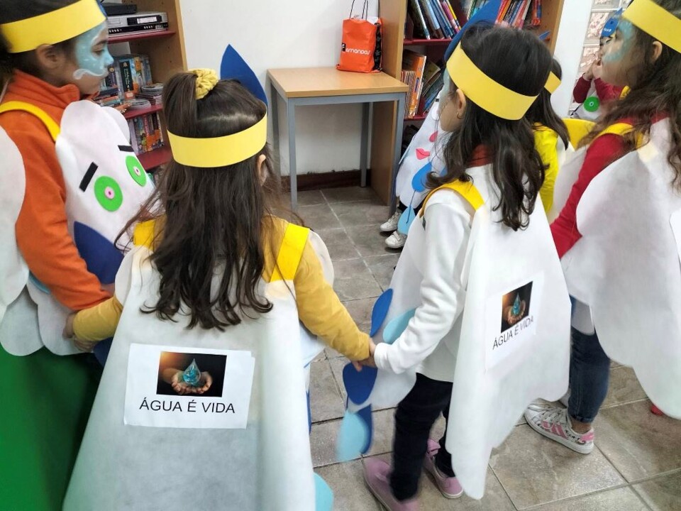No âmbito do PAA da educação pré- escolar“ O Planeta Terra é a nossa casa- sensibilizar para a escassez dos recursos naturais”, surgiu a abordagem da água. Com ela fizemos algumas experiências, aprendemos que a devemos poupar e ainda que é indispensável à vida! Elaborámos as nuvens, as pingas e aprendemos o slogan “ÁGUA É VIDA”. E foi assim que nos vestimos de nuvens no desfile de Carnaval com a missão de mostrar à comunidade a importância deste bem essencial natural.