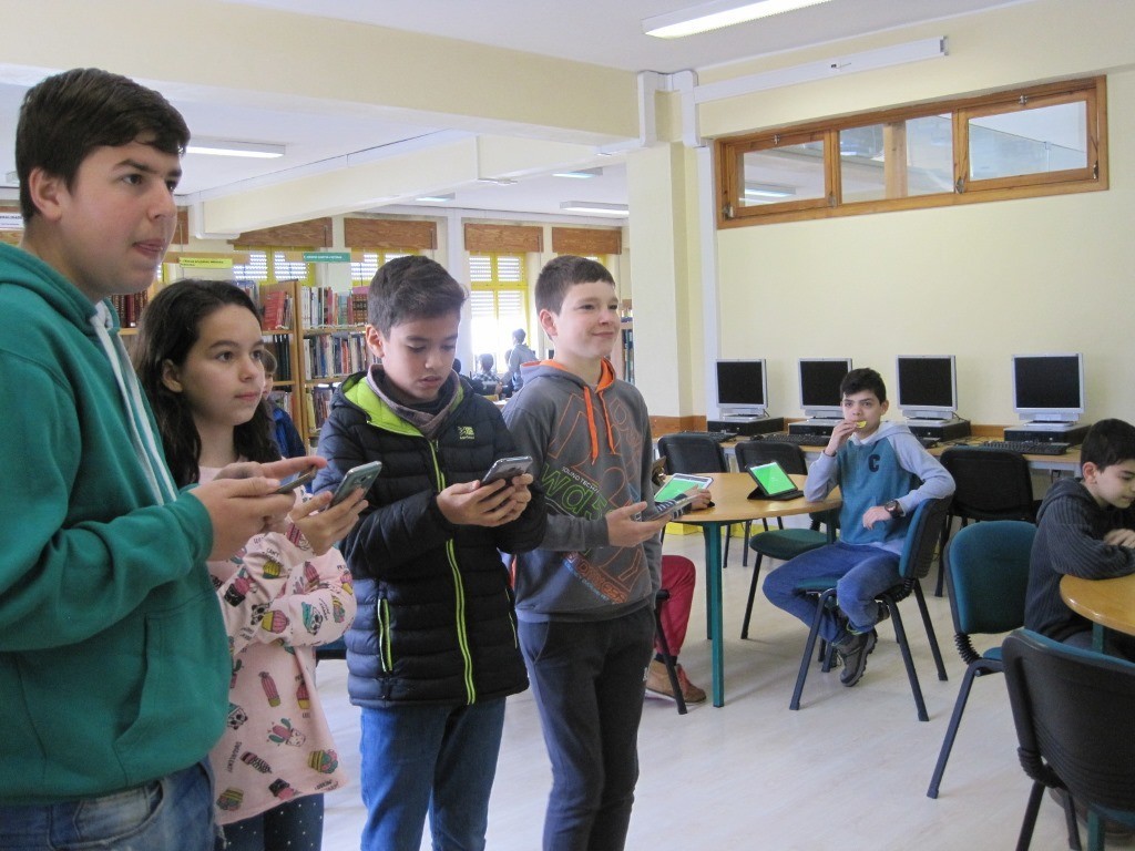 Neste contexto, as turmas do 6.ºB, 6ºE e 6ºG participaram e utilizaram o Kahoot!, no âmbito da disciplina de Inglês, de modo a promover a aprendizagem através do “jogo”, usando os recursos e espaço da biblioteca para a realização de atividades de ensino e aprendizagem. Foi visível o entusiasmo, a admiração e motivação dos alunos para as tarefas, quando o professor usou o seu telemóvel e o quadro interativo para dinamizar a atividade, bem como a sua satisfação em usar os tablets e os seus próprios telemóveis em contexto educativo. Ao longo do 3º período,serão dinamizadas sessões com todas as turmas do 5º ano, pretendendo-se: