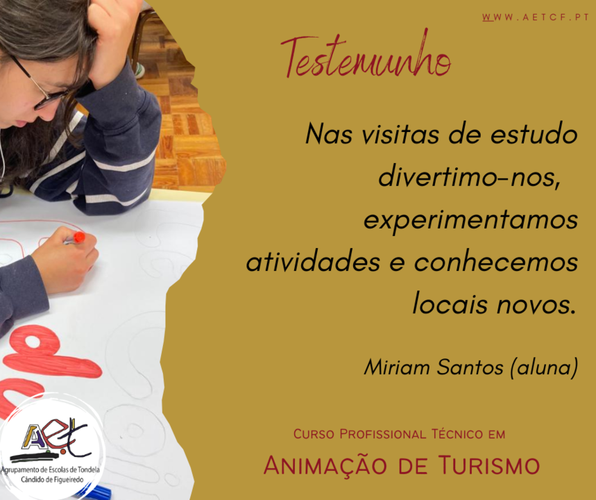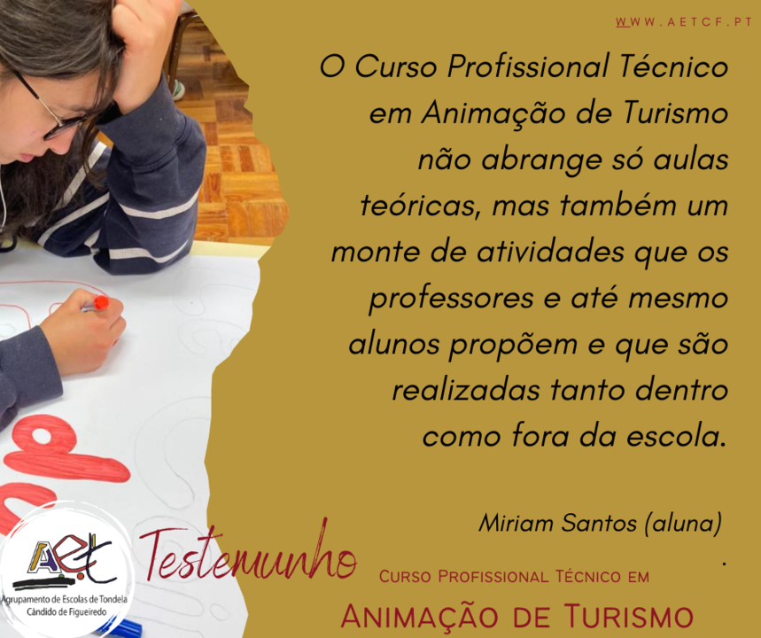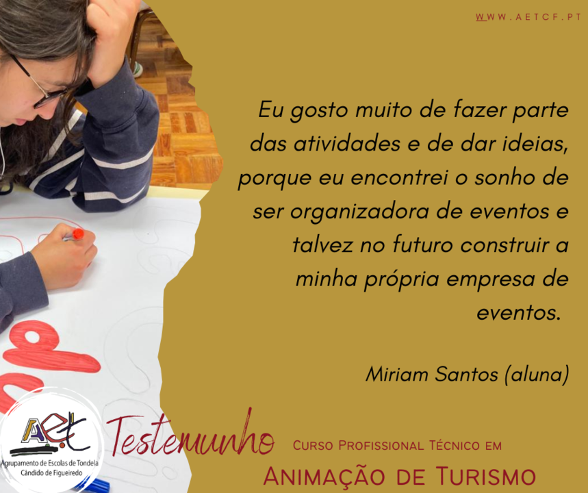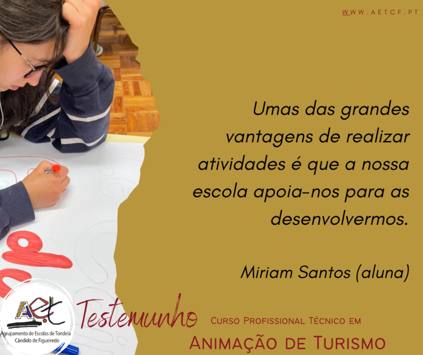 Testemunho da aluna Miriam Santos, a frequentar o curso profissional em Animação de Turismo na Escola Secundária de Molelos