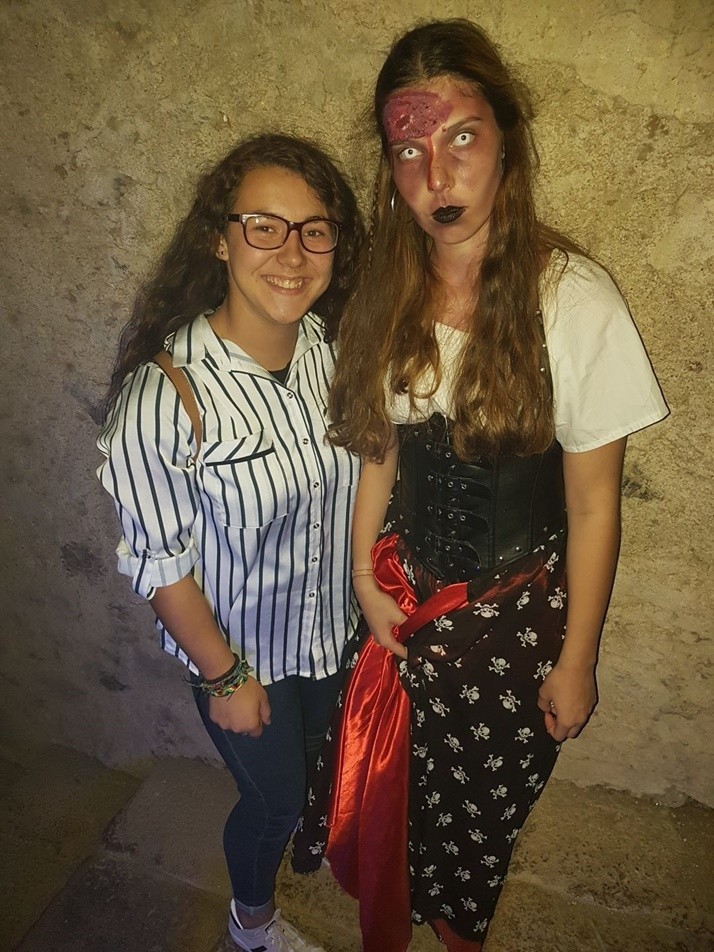 No passado dia 29 de outubro, os alunos do 10º e 11º ano do curso profissional de turismo ambiental e rural realizaram uma visita de estudo a Santa Maria da Feira. Depois de contactarem com as entidades organizadoras do evento Castelo Assombrado e de conhecerem as características, necessidades logísticas e a organização do evento, os alunos tiveram a oportunidade de participar e conhecer as personagens que tomaram o castelo assombrado. Atentos às performances e caracterizações, os alunos voltaram com muita inspiração e conhecimentos para aplicar nos eventos temáticos futuros, como a Sala do Terror.
